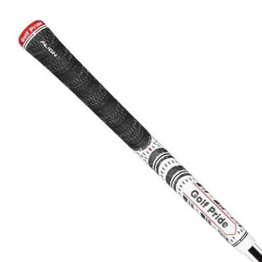 Golf Pride Multicompound MCC Align Grip. New and terrific style grip – this is for those who have inconsistent hand position or feel like they need help in getting the club in the fingers for a stronger grip – not in the palms. When installed on a shaft, the red ridge rises and extends down the back of the grip to aid better hand alignment and more consistency, locking the hands in place every time. Align Technology – Consistent Hand Placement = Consistent Results
