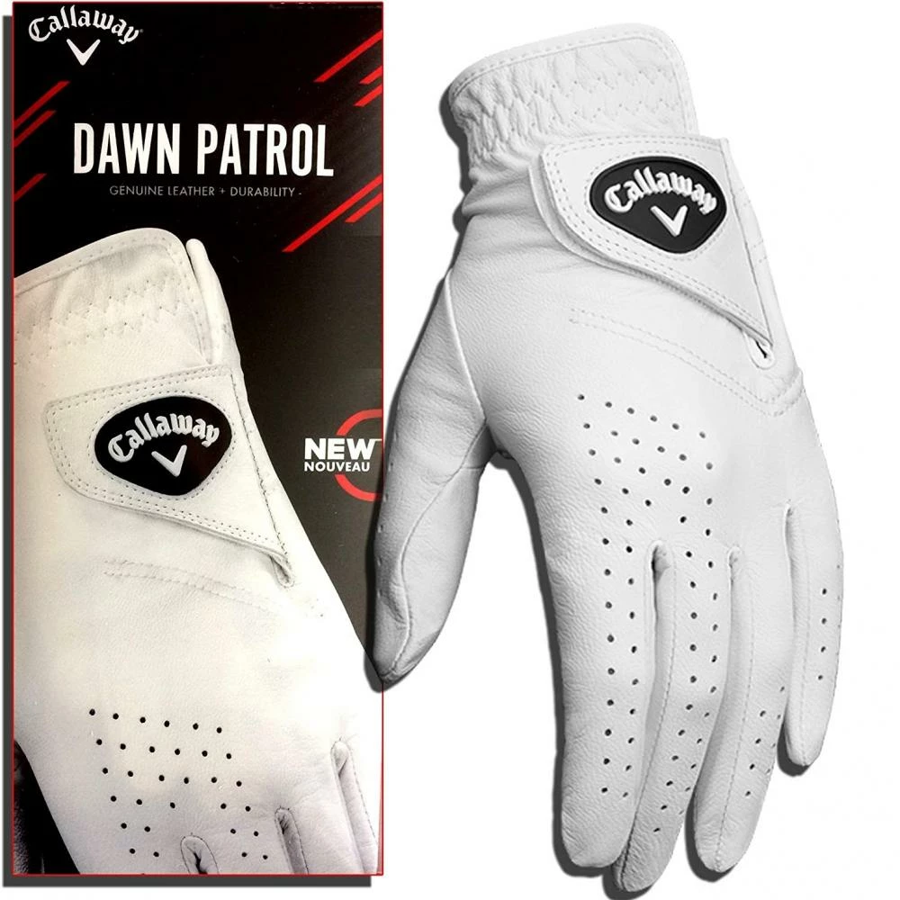 The Callaway Dawn Patrol leather glove offers advanced performance in all weather conditions. Wonderful feel Leather palm patch for grip where you need it most. Premium feel in drier or even in cold conditions. The Callaway Golf Dawn Patrol All Leather Glove provides the ultimate in performance and durability in an all leather glove.